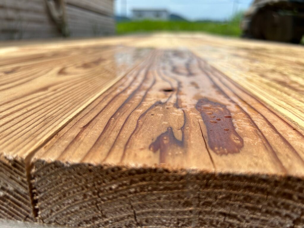 「作業員の足元負担軽減」と「滑りにくさ」への配慮を打ち出す - 学校や住宅地に近い土木現場で、見える部分の敷板だけでもハイパーCLT敷板を採用し、
