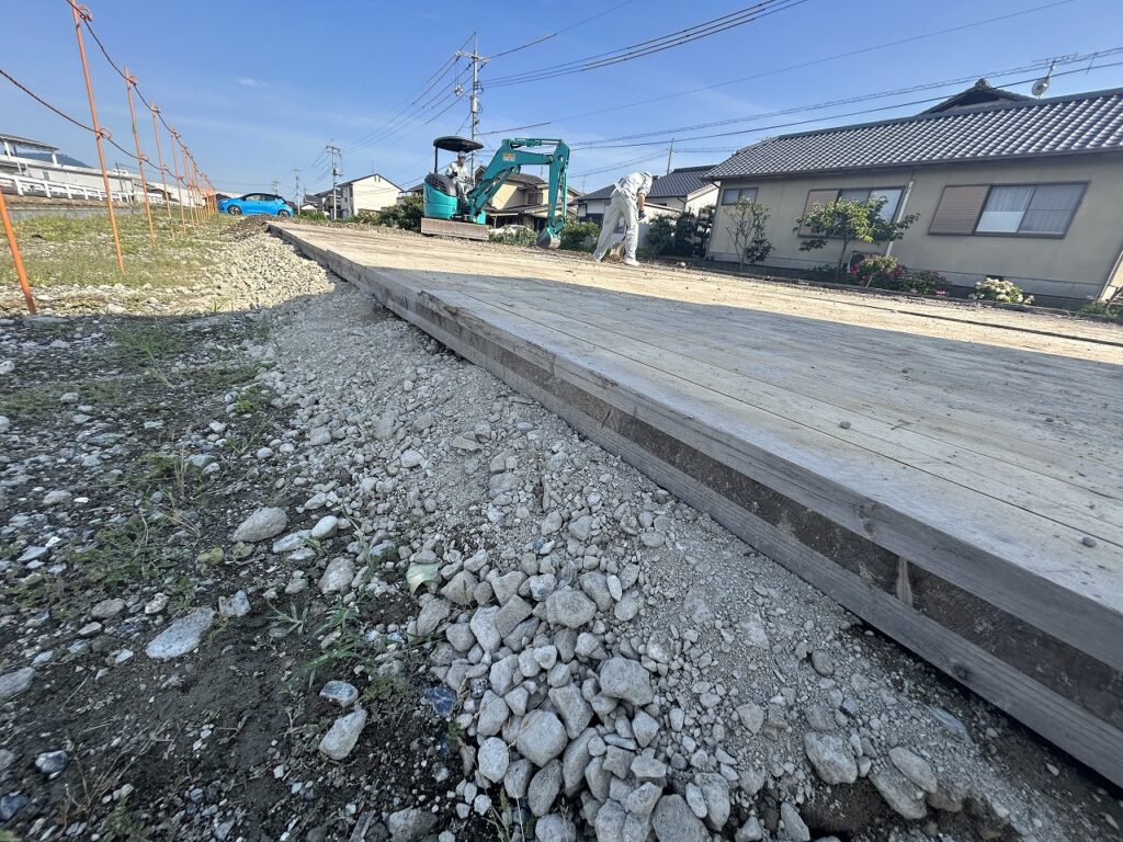 そこでカイタクがご提案しているのが、木製の土木用敷板「ハイパーCLT敷板」(NETIS番号:TH-250021-A)です。