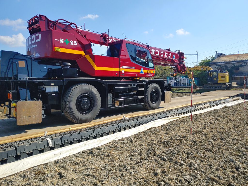 • 敷鉄板とハイパーCLT敷板を組み合わせた、賢い現場運営